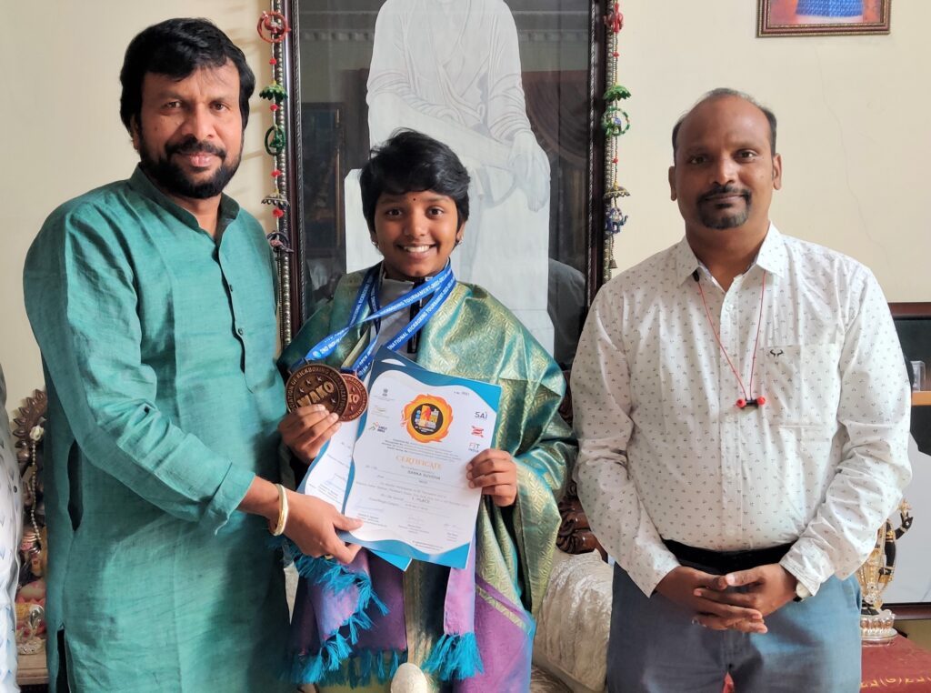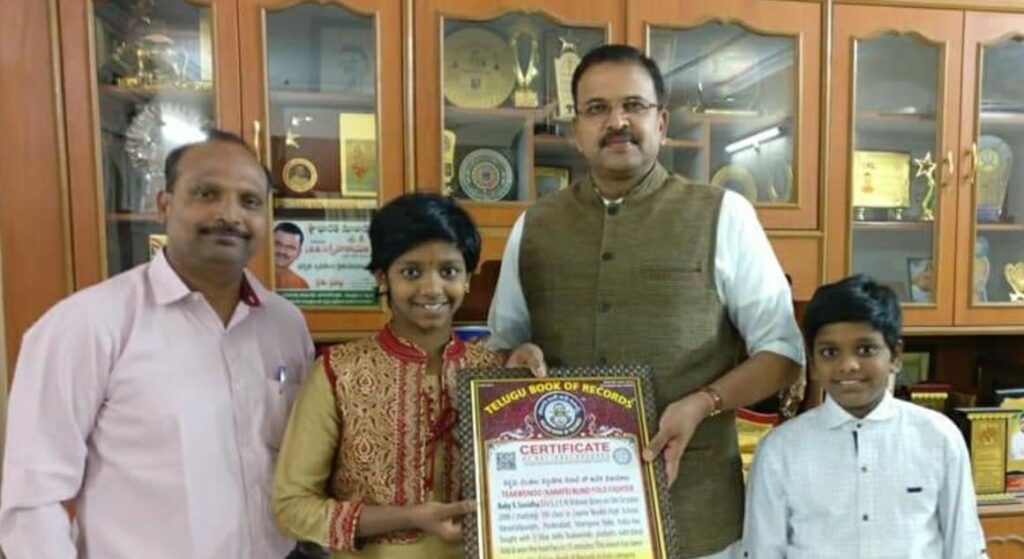 I Have achieved kickboxing International Gold and Bronze medals, I holds four Guinness World Records I have achieved over 30 national and international records, including High range world records of books, Telugu Book of Records, Super Kids Records, Kalam World Book of Records, Miracles World Book of Records, Wonder Book of World Records, and Indian Talent Records and many more. My expertise in blindfolded performances, from solving complex tasks to precision-based activities, has set me apart. Alongside this, I have excelled in riding bikes and driving cars, I am good at classical and western dance, Also taken Training yoga instructor certified courses, and meditation, constantly pushing my limits and inspiring others to do the same.. I have mastered the ability to perform two different activities simultaneously using both hands, showcasing exceptional coordination and cognitive skills. I can write with both hands at the same time, demonstrating perfect synchronization and control.